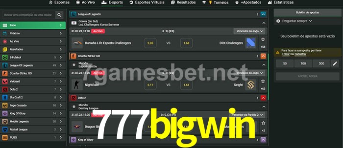O 777bigwin oferece uma grande seleção de opções de apostas em e-sports com probabilidades competitivas